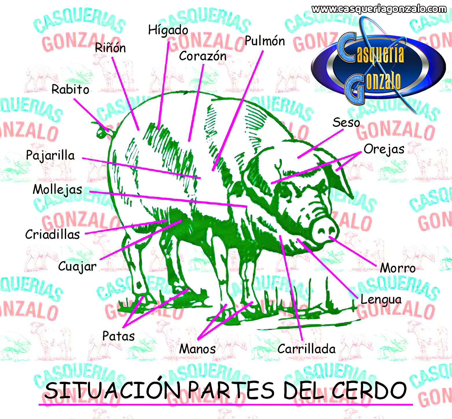 CABEZA: De ella se extrae el seso (1), la carrillada (2),